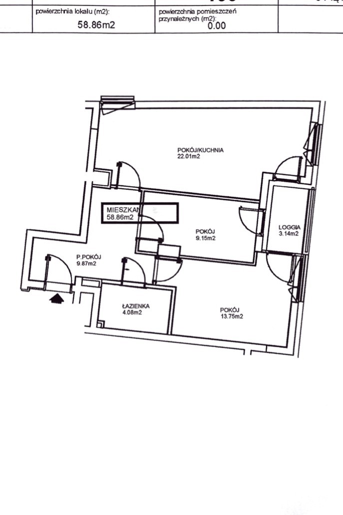 Mieszkanie o pow. 58,86m2 + loggia 3m2 (3,14m2).