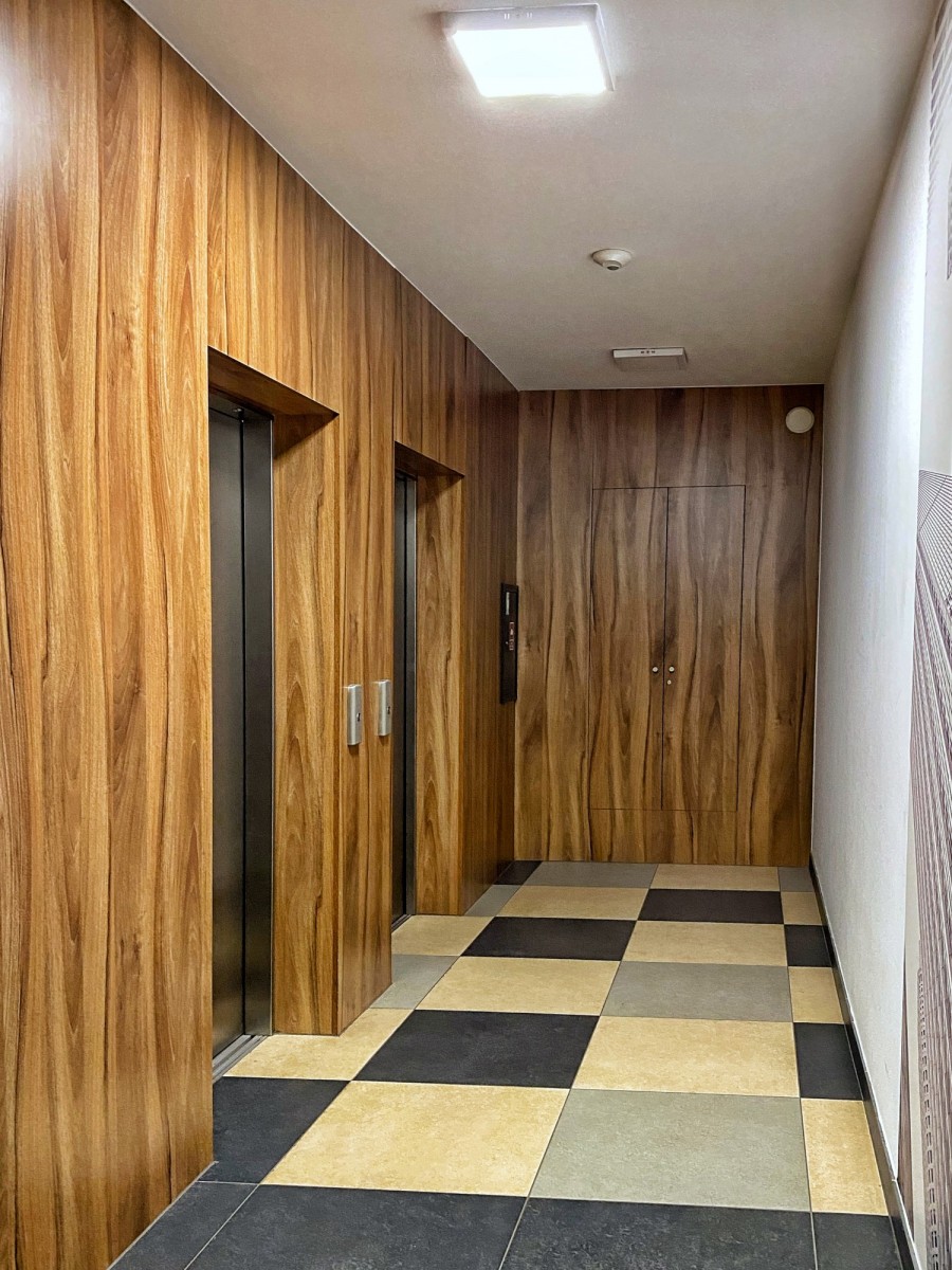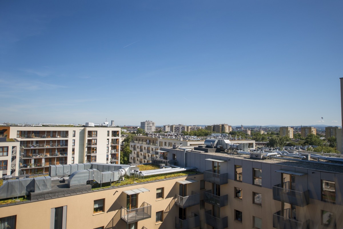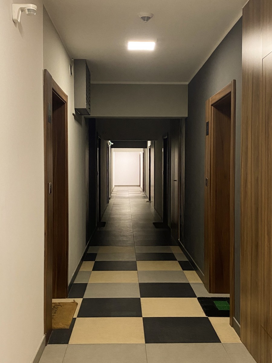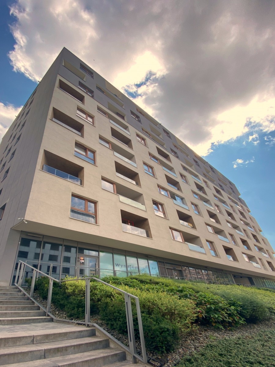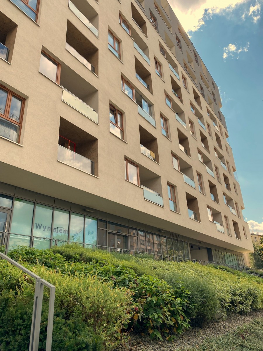 Monitoring budynku, w hali garażowej i na korytarzach, dwie windy (z poziomu -1 hala garażowa), centralny system p.poż.: oddymianie, monitoring straży pożarnej.