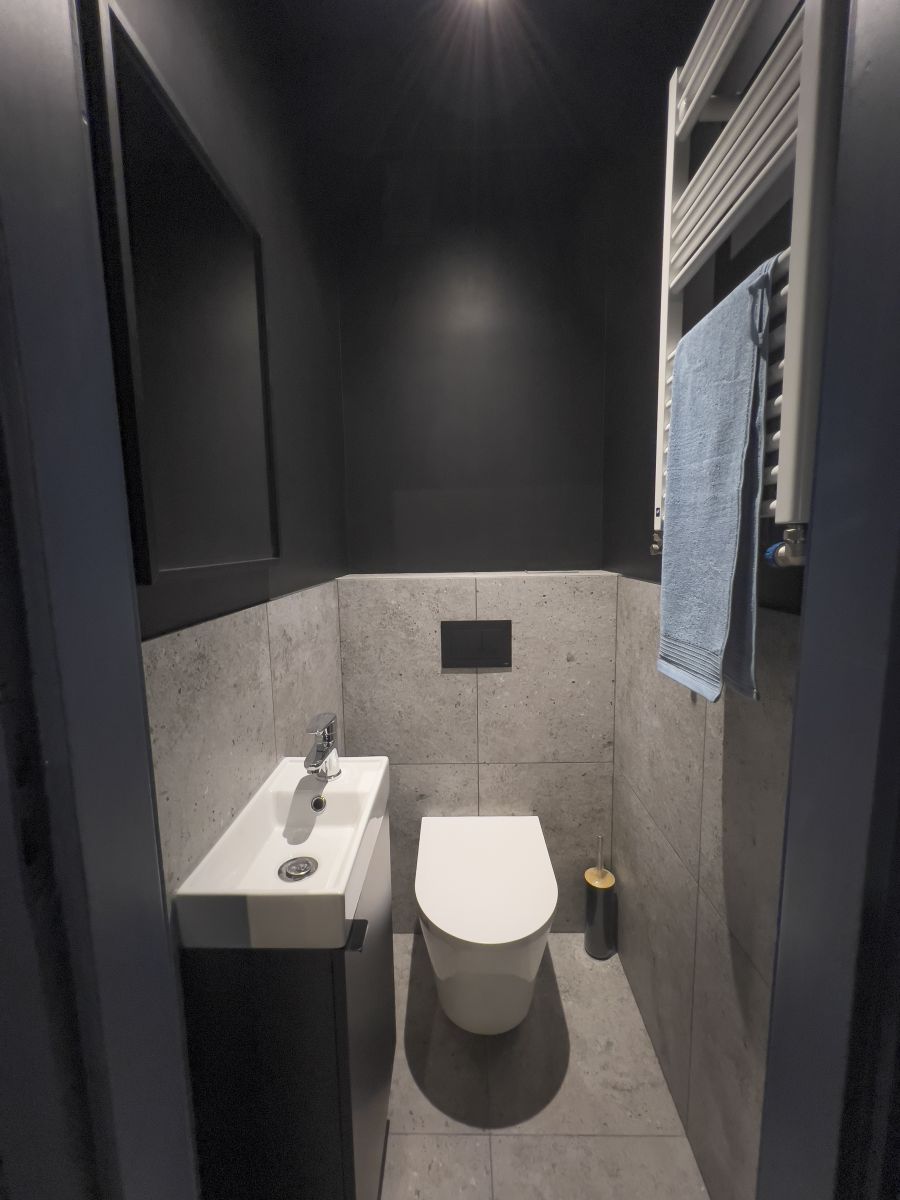 Dwa pokoje mają prywatne łazienki. Pozostałe 3 pokoje mają wspólną łazienkę. Wspólna kuchnia. Dodatkowe wc. Całe mieszkanie jest po generalnym remoncie.