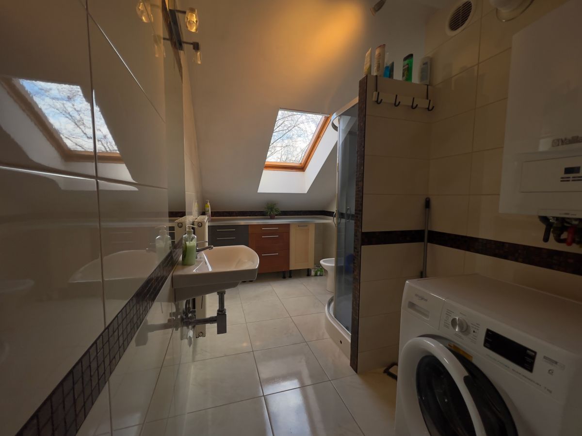 Mieszkanie znajduje się na 2 piętrze budynku jednorodzinnego. Składa się z 5 pokoi plus część wspólna czyli salon z kuchnią, łazienka i wc. Ze względu na pozostałych najemców pokój jest przeznaczony dla osoby studiującej lub od kilku lat pracującej płci męskiej.