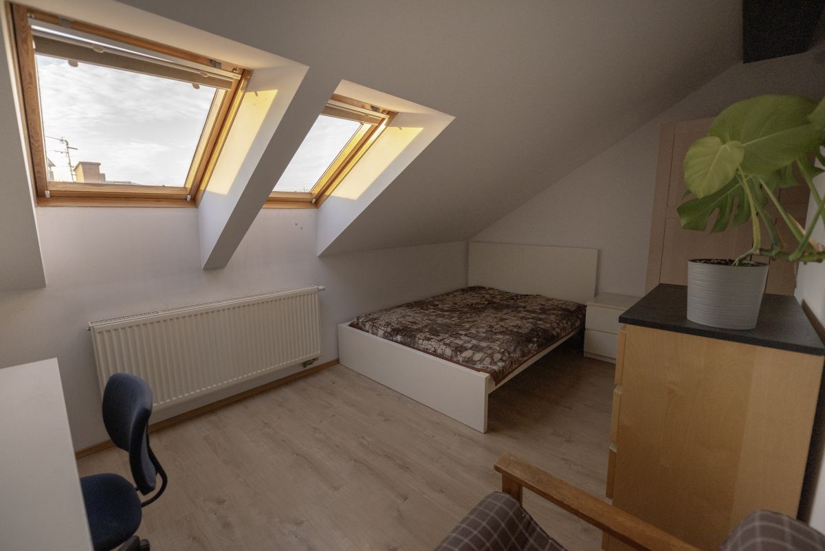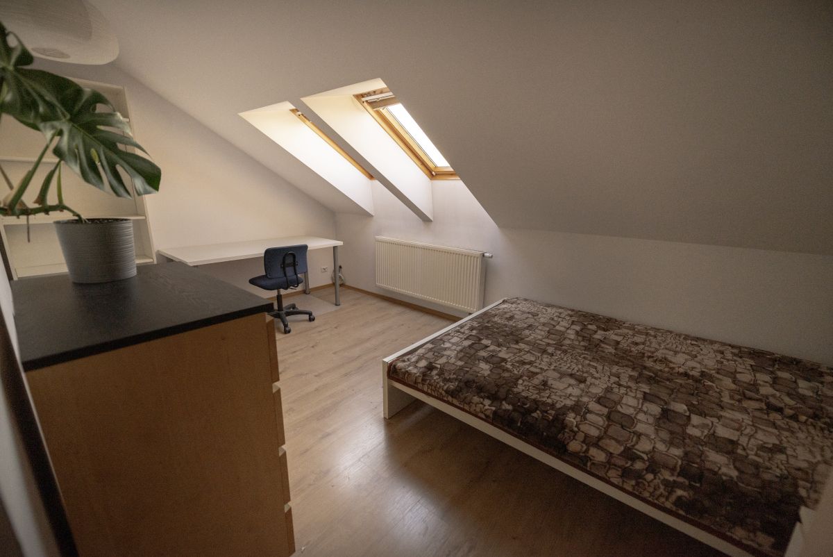 The apartment is located on the 2nd floor of a single-family building. It consists of 5 rooms plus a common area, i.e. a living room with a kitchen, bathroom and toilet. Due to the other tenants, the room is intended for a male student or person who has been working for several years.